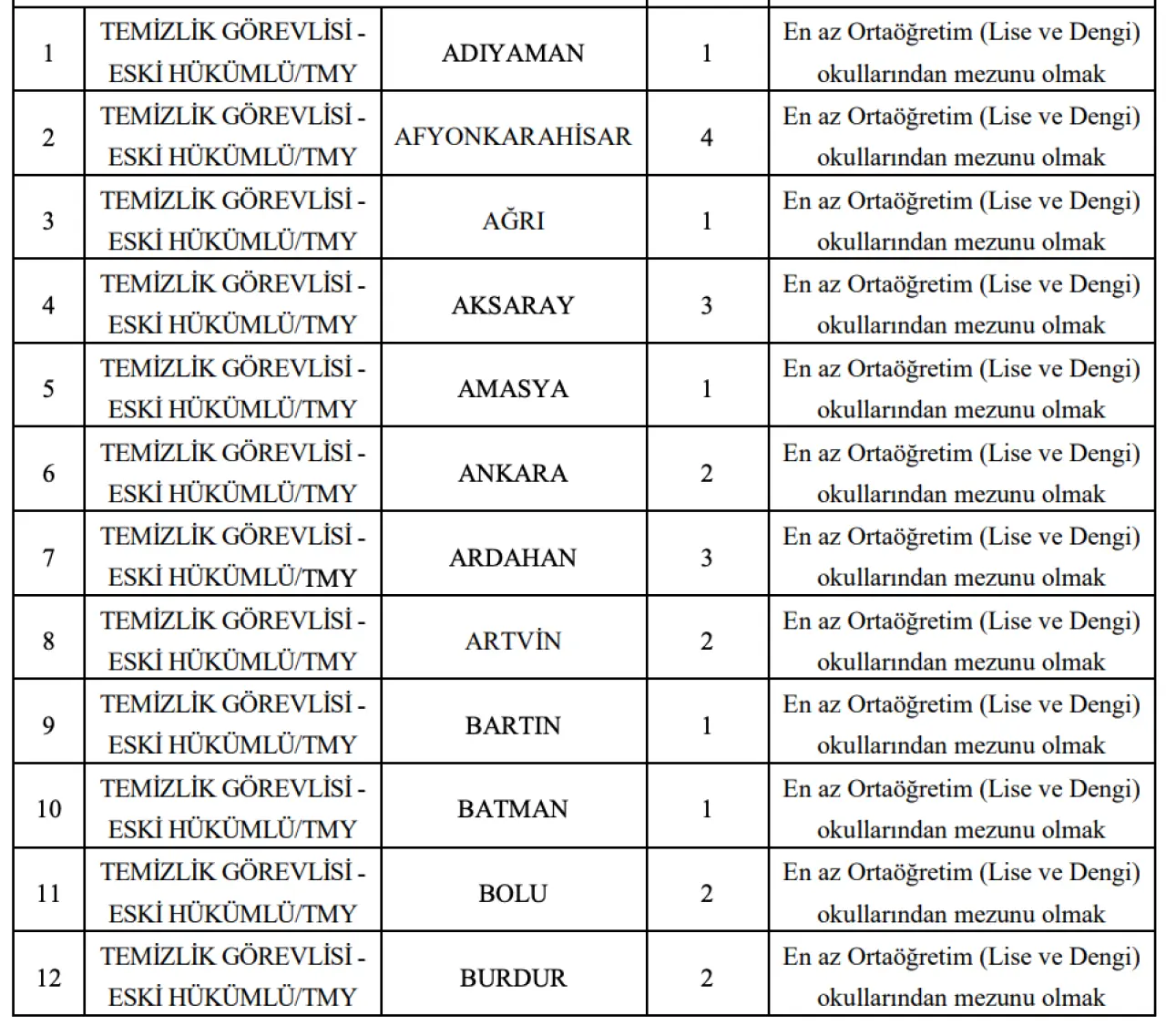 Eski Hükümlü/TMY – 112 Temizlik Görevlisi: