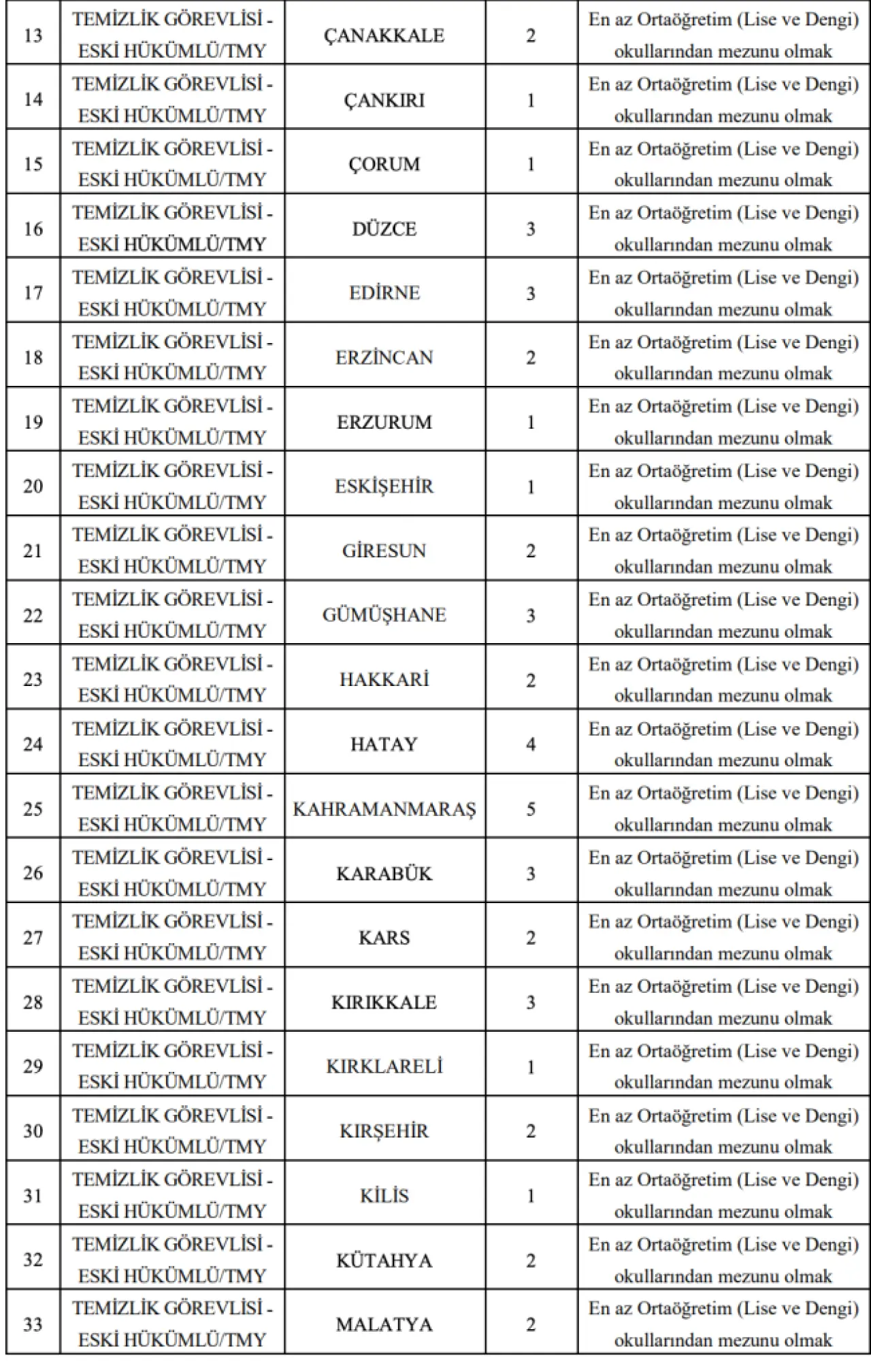 - Eski hükümlü/TMY kapsamında iş arayan adaylar