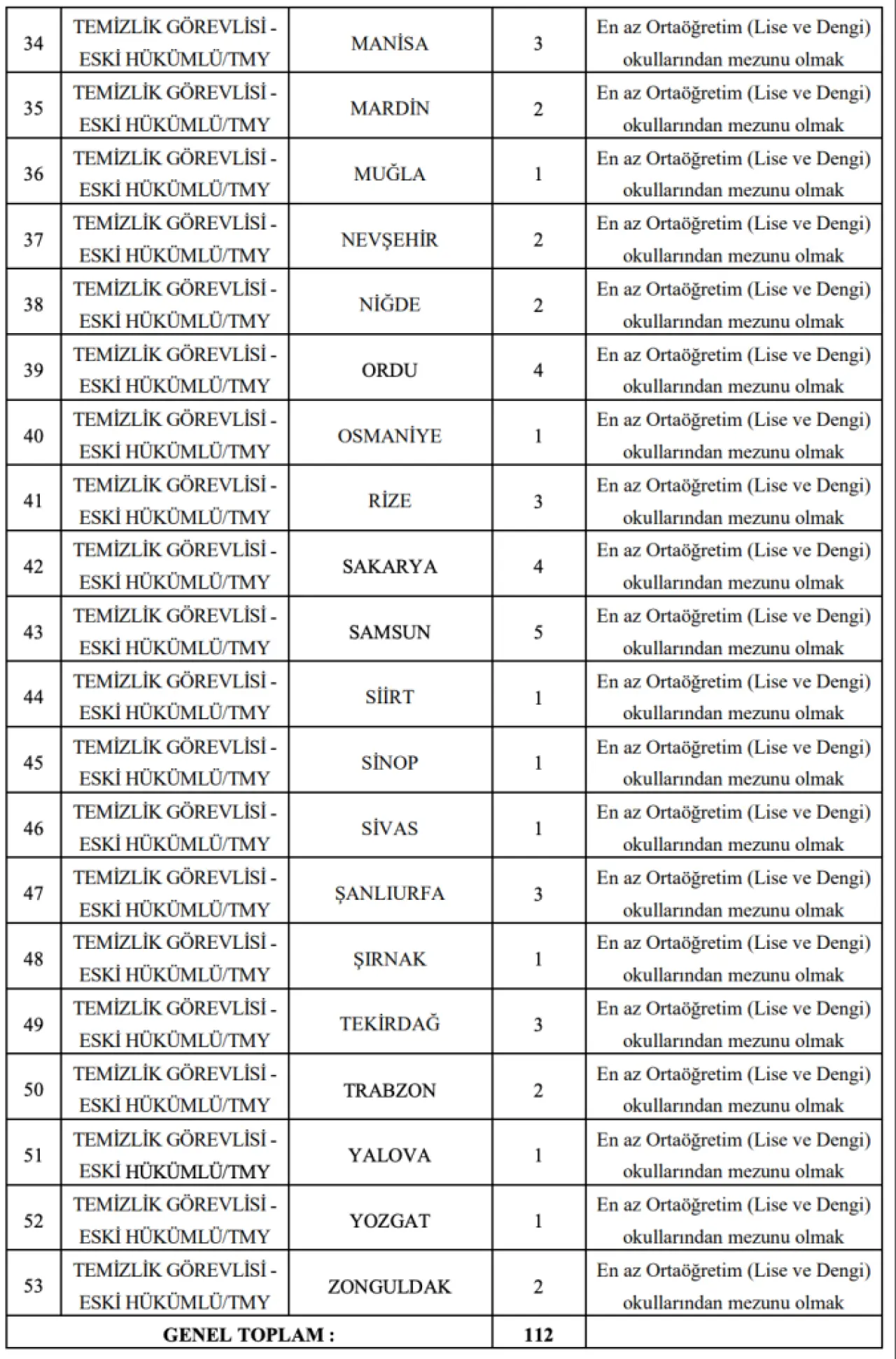 - 112 Temizlik Görevlisi alımı yapılacak