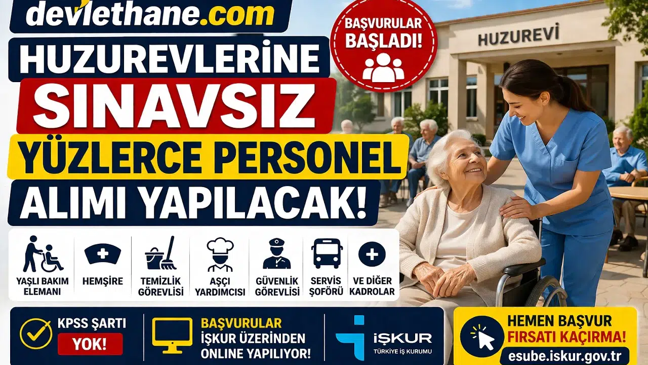 Aile ve Sosyal Hizmetler Bakanlığı’na bağlı huzurevleri ile özel bakım merkezlerinde istihdam edilmek üzere yüzlerce personel alımı yapılacağı duyuruldu. İŞKUR üzerinden yayımlanan ilanlarla birlikte, farklı kadrolarda sınavsız personel alımı süreci resmen başladı. Başvurular internet üzerinden alınırken, yoğun ilgi bekleniyor.
