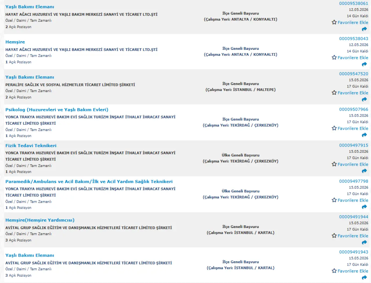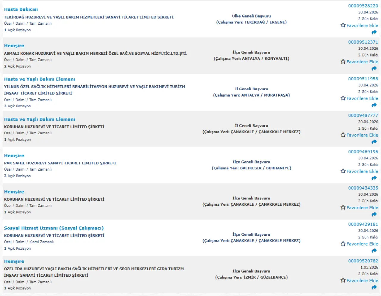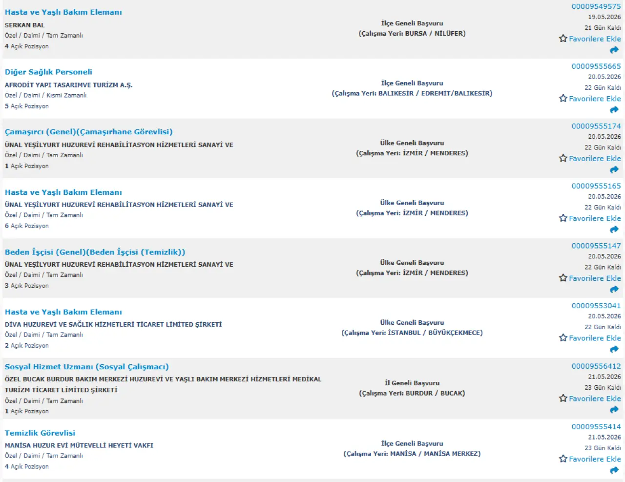 Yayımlanan ilanlara göre huzurevi ve yaşlı bakım merkezlerinde birçok farklı pozisyonda alım yapılacak. Öne çıkan kadrolar şu şekilde: