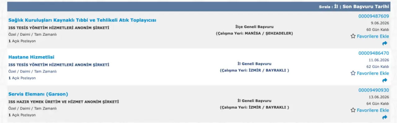 İŞKUR ilanlarına göre alım yapılacak iller arasında: