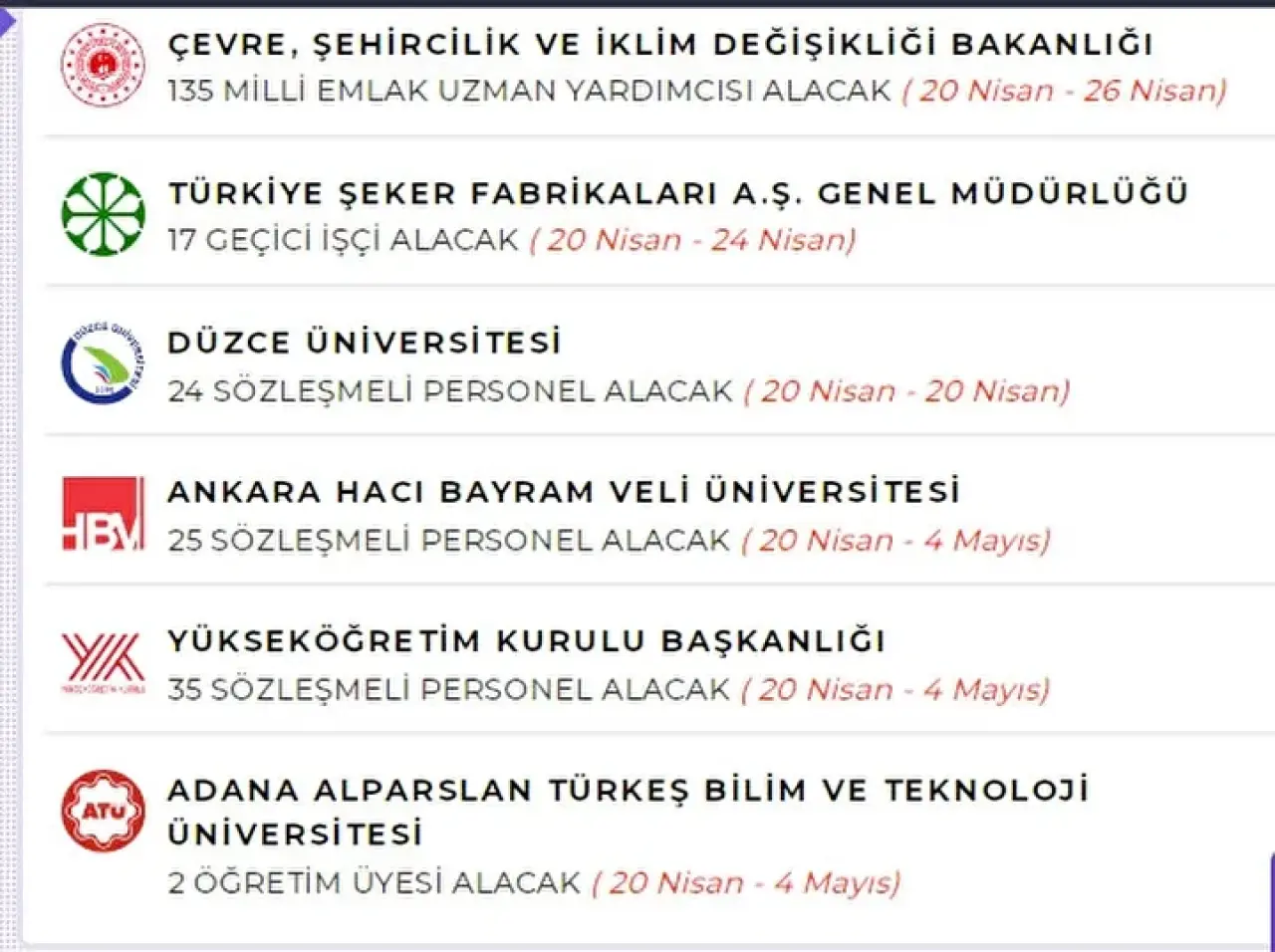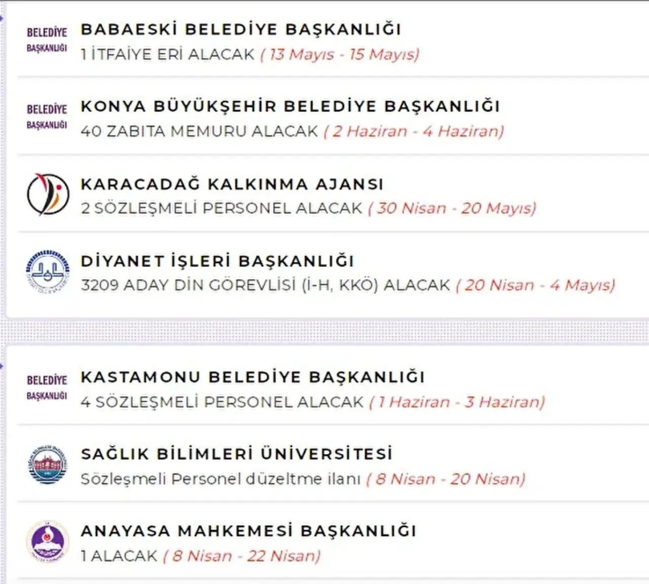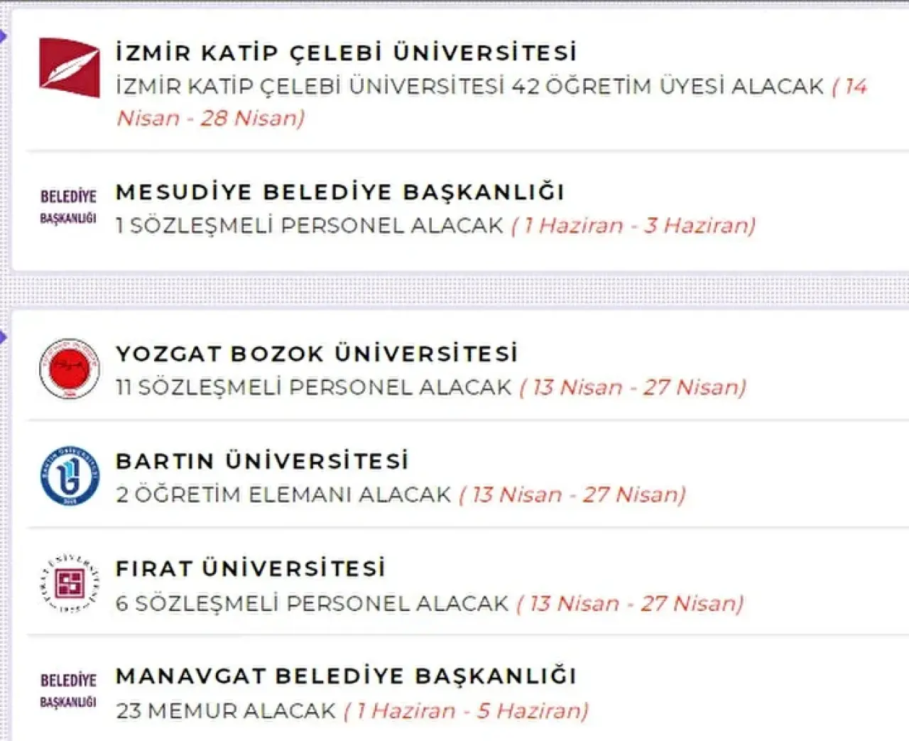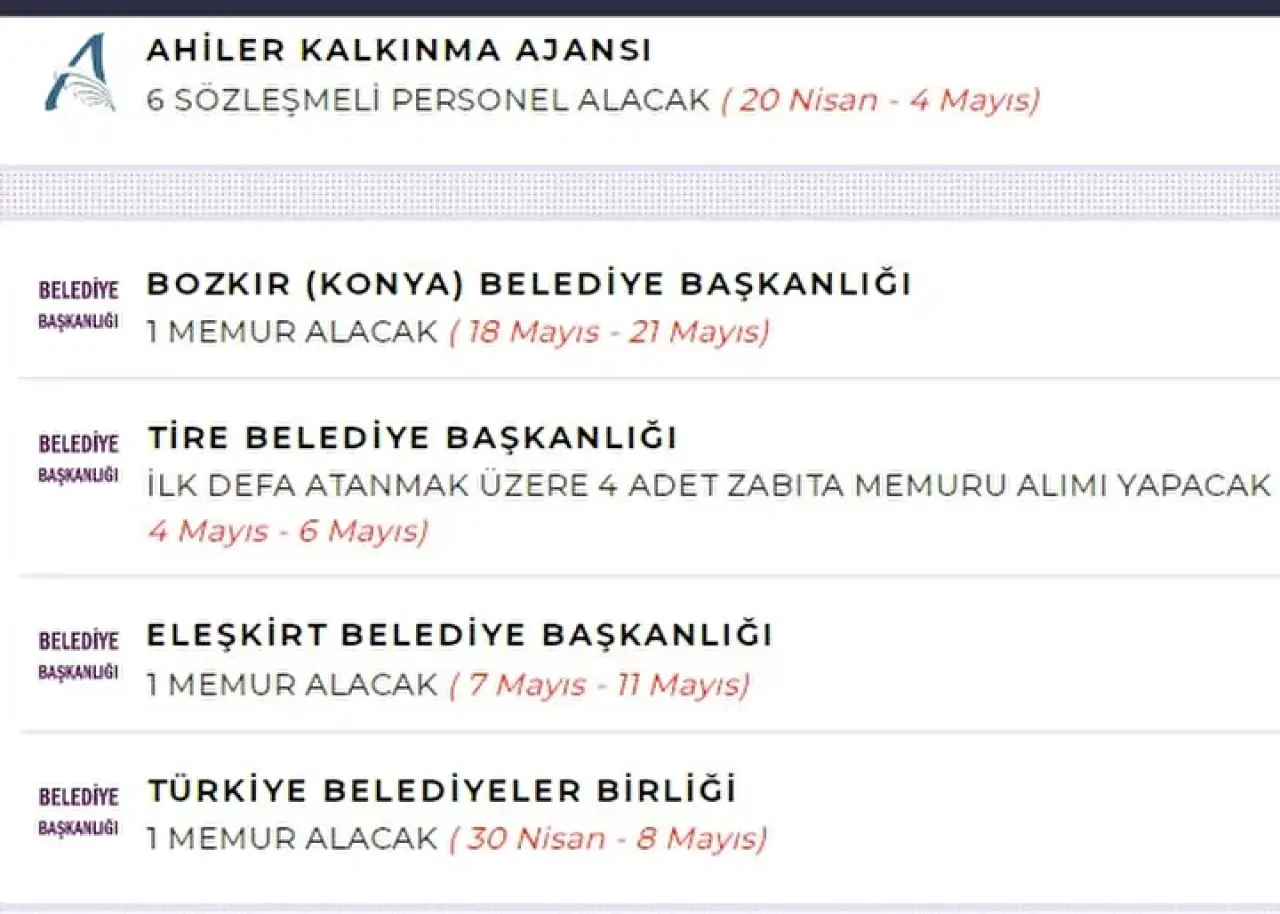 Bu kurumlar, farklı şehirlerde ve farklı kadrolarda alımlar yaparak istihdamı artırıyor.