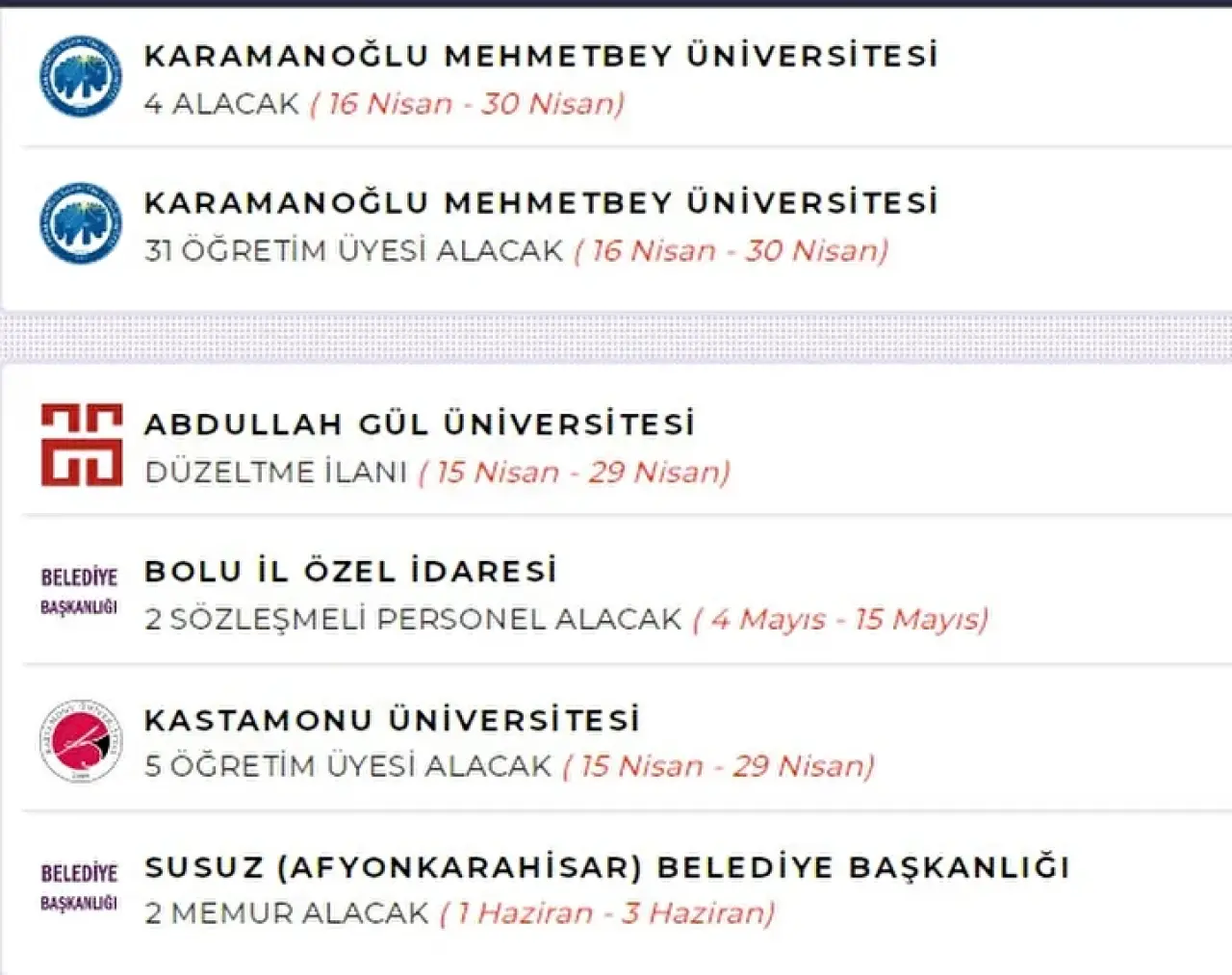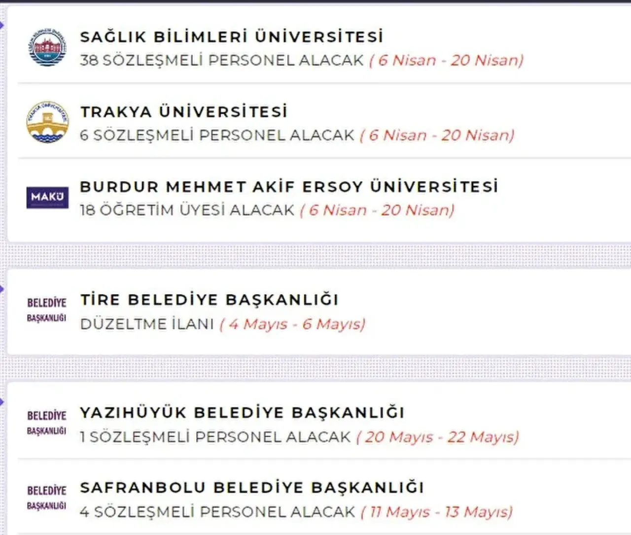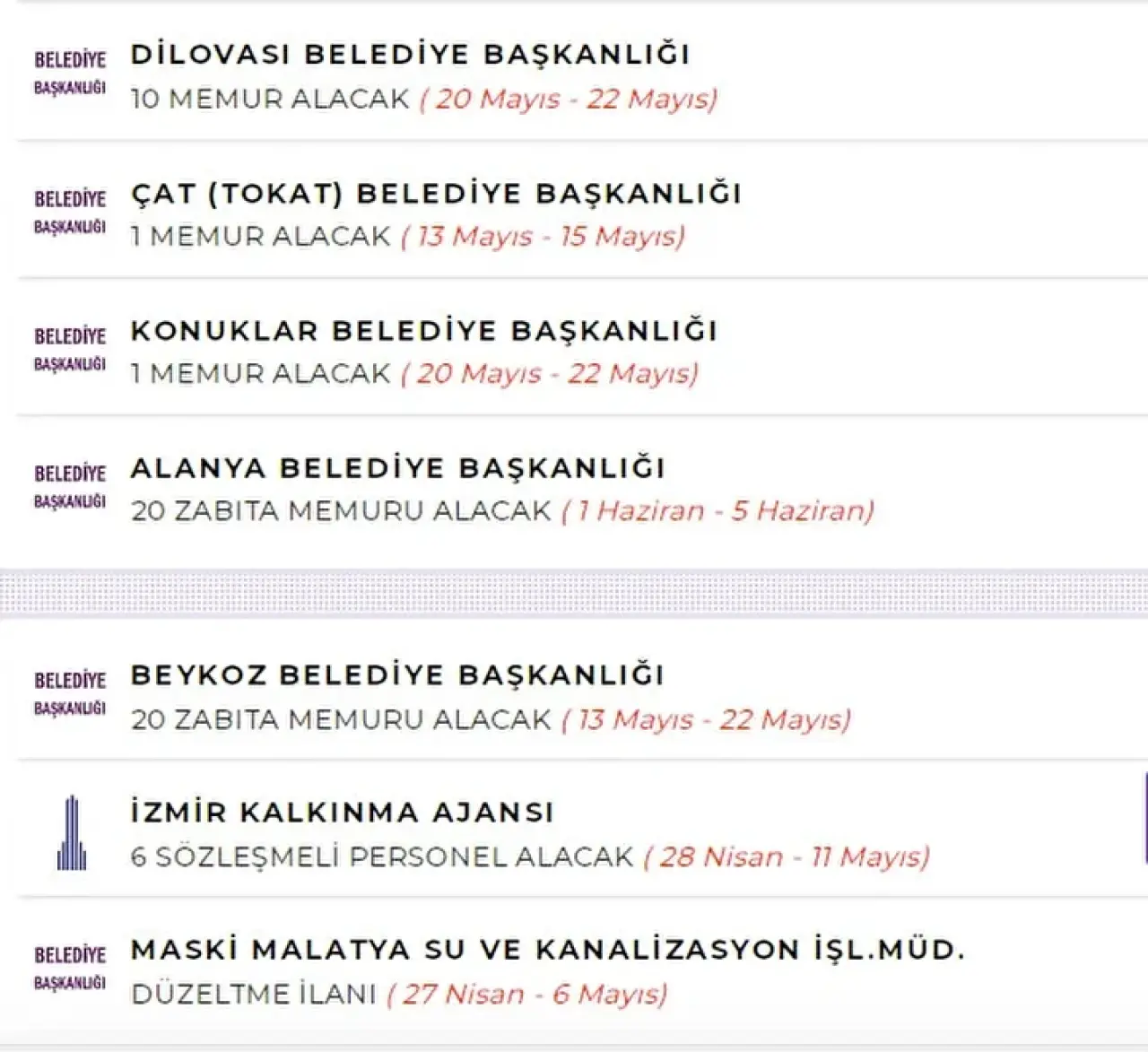 Bu kurumlar, farklı şehirlerde ve farklı kadrolarda alımlar yaparak istihdamı artırıyor.