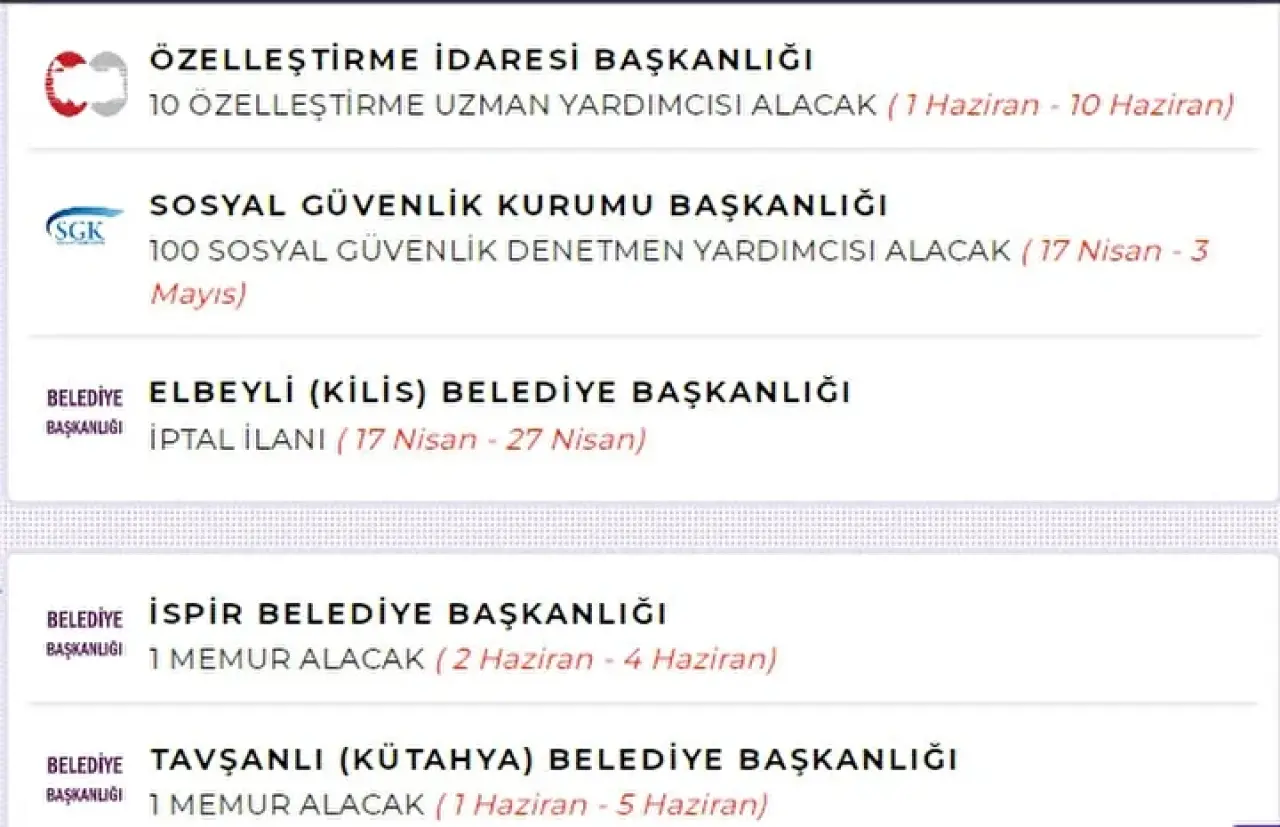 Yeni yayımlanan ilanlar kapsamında memur, işçi ve sözleşmeli personel kadrolarında binlerce kişiye istihdam sağlanması planlanıyor. Özellikle farklı eğitim seviyelerine hitap eden kadrolar, geniş bir aday kitlesine başvuru imkânı sunuyor.