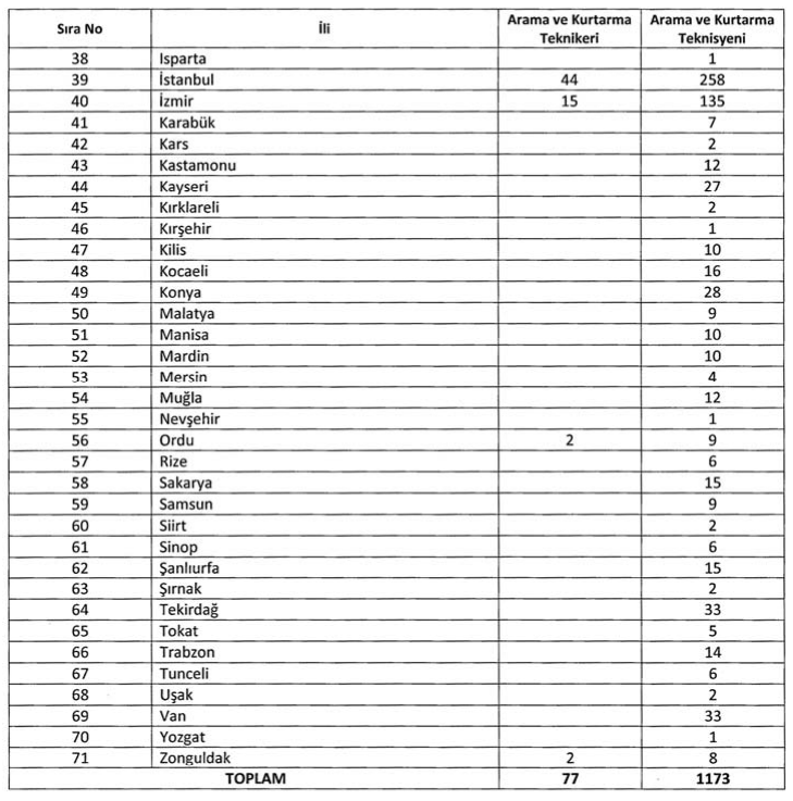 AFAD’ın yayımladığı kontenjan listesine göre 81 ilin tamamında personel alımı yapılacak.