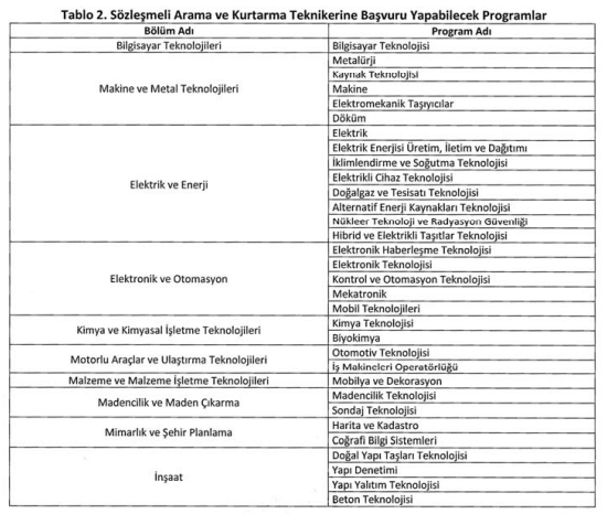 Elektrik-Elektronik, Makine, İnşaat, Motorlu Araçlar, İtfaiyecilik vb. alanlardan mezun olmak,
