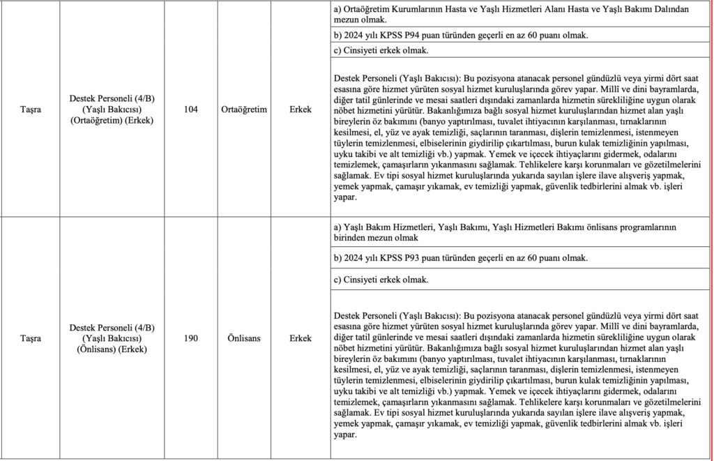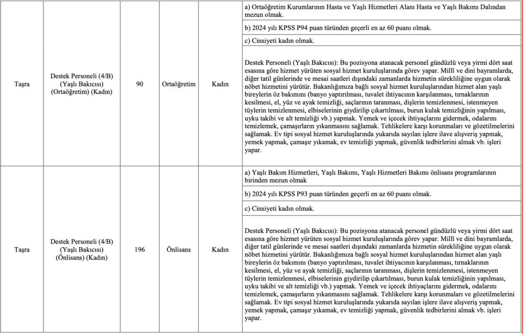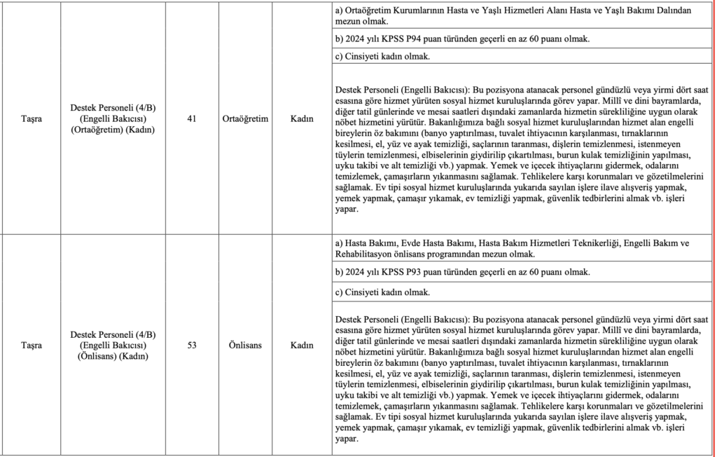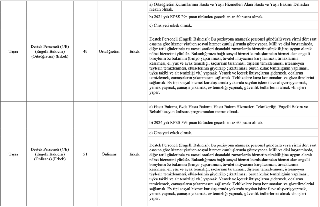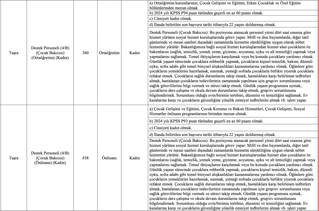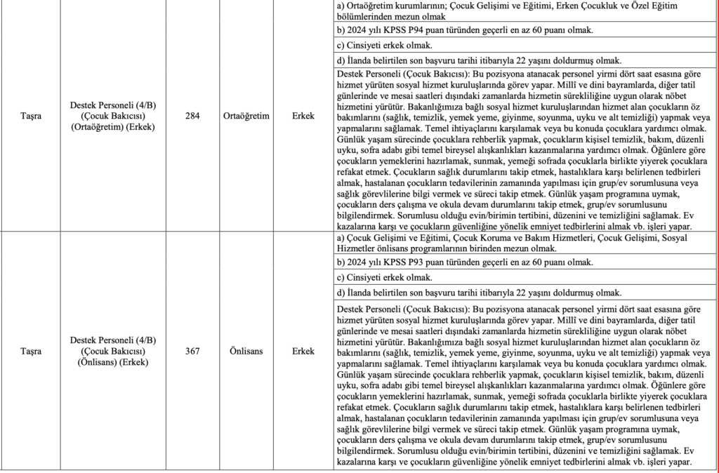 Aile ve Sosyal Hizmetler Bakanlığı’nın 2025 yılı için en yüksek sayılı personel alımlarından biri olan bu ilan için 26 Aralık 2025 son gün. Başvuru yapmayı planlayan adayların, özellikle Özel Nitelik Tablosu’nu incelemeden tercih yapmamaları önem taşıyor.