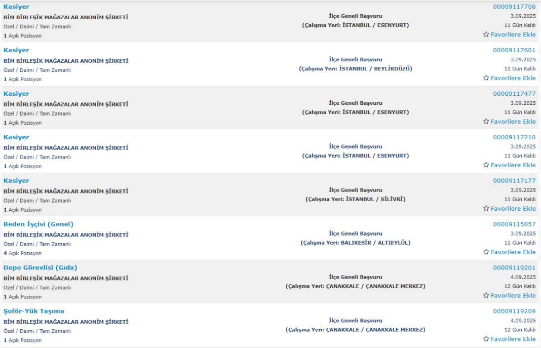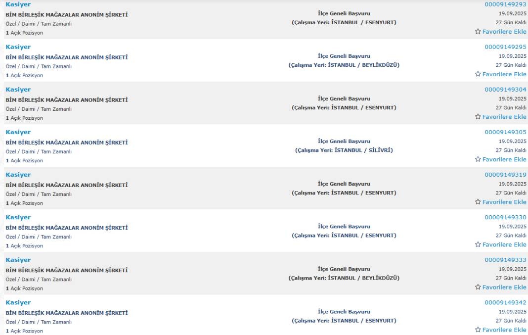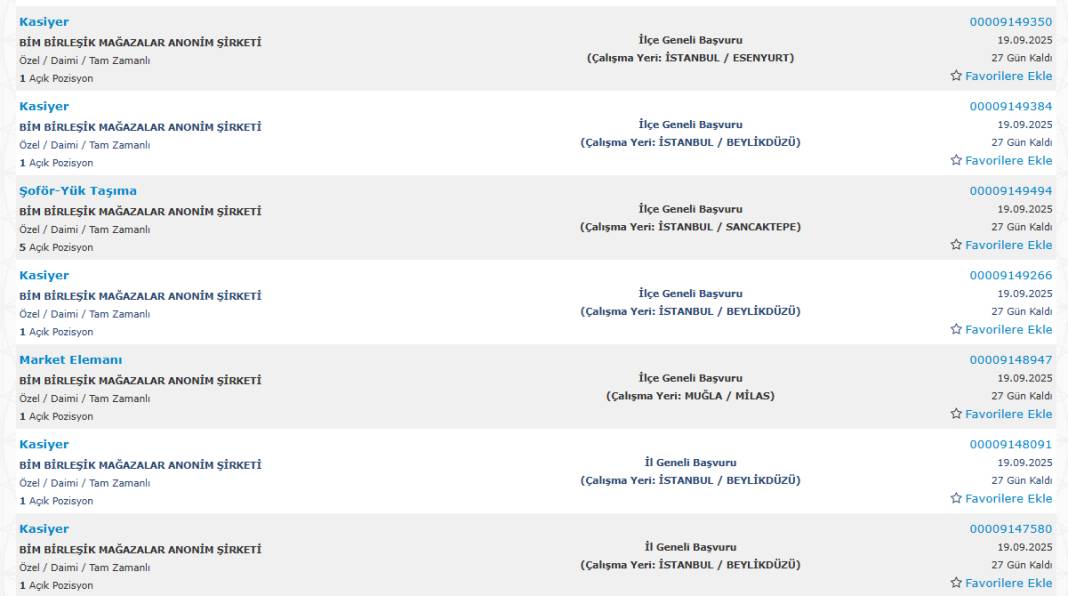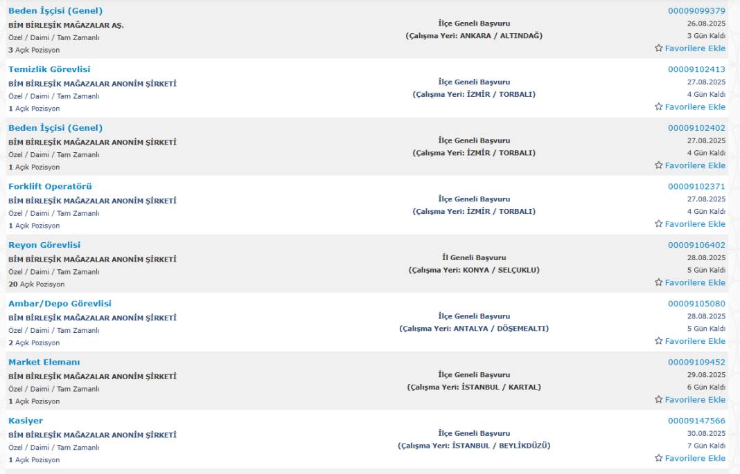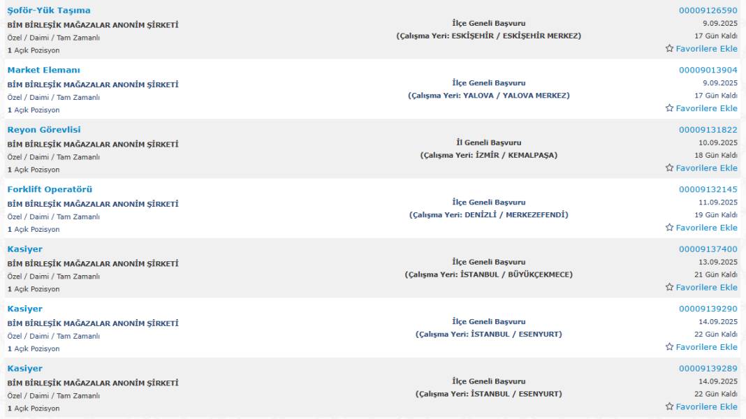 Bim marketler zinciri, Türkiye genelindeki şubelerinde görevlendirmek üzere yüzlerce yeni personel alımı yapacağını duyurdu. Başvurular, Türkiye İş Kurumu’nun (İŞKUR) esube.iskur.gov.tr adresi üzerinden başladı.