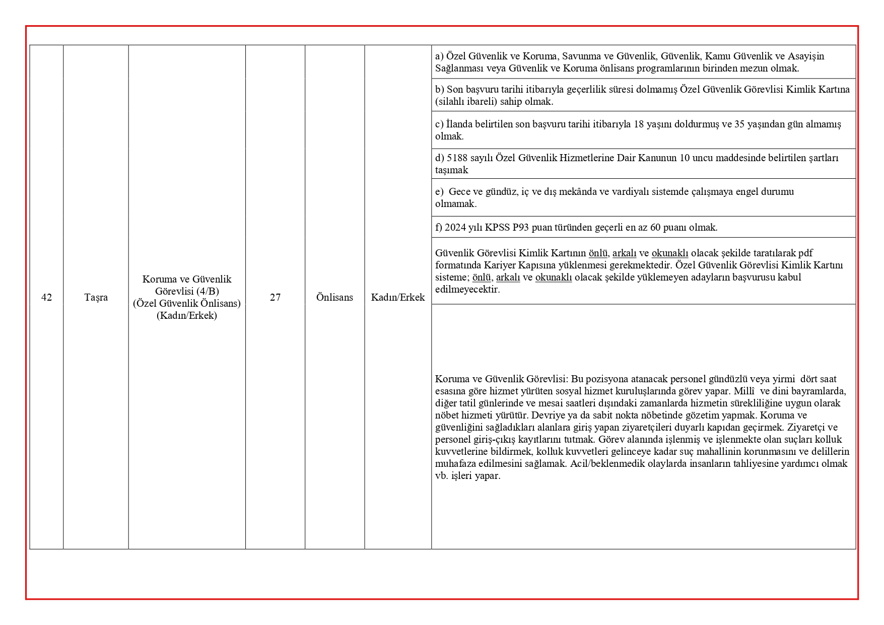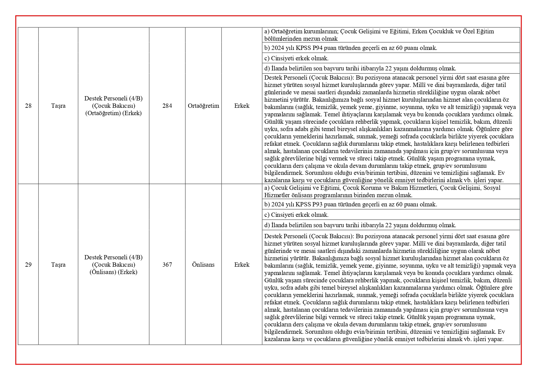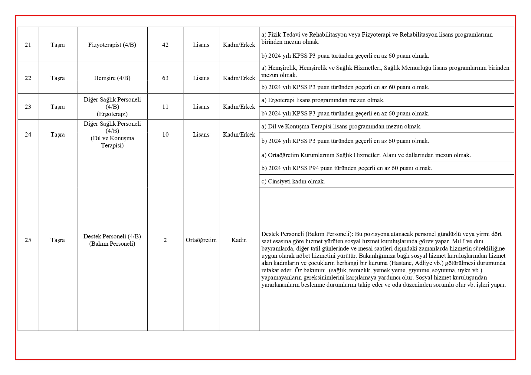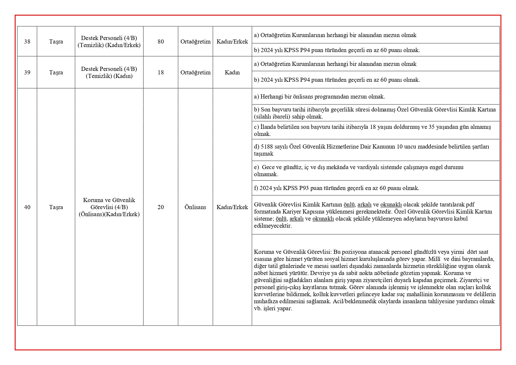 Alım kapsamında işe yerleştirilecek personeller;