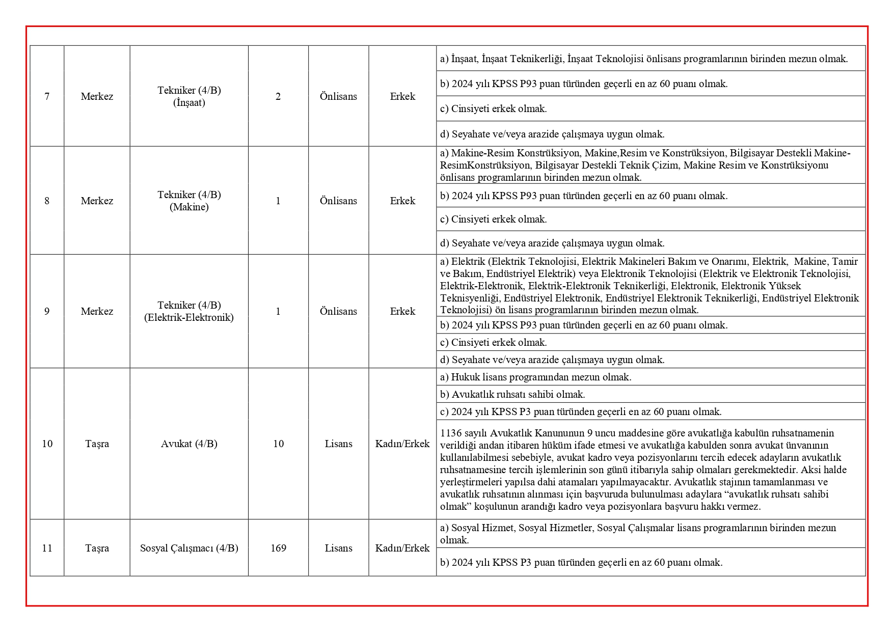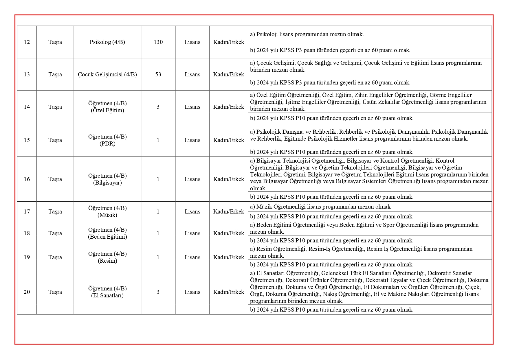 Her pozisyon için aranan özel nitelikler ve ek şartlar, Bakanlık tarafından yayımlanan tablolarla ayrıntılı şekilde duyuruldu. Adayların başvuru öncesinde kadroya özel şartları mutlaka incelemesi gerekiyor.