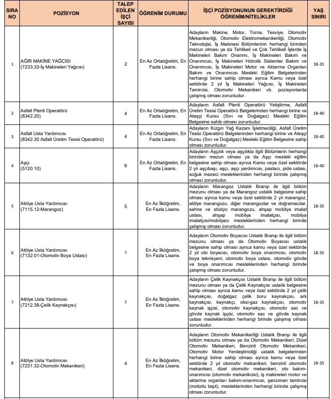 Adayların başvuru yapmadan önce ilan metnindeki özel şartları dikkatle incelemesi gerekiyor.