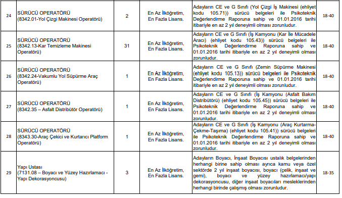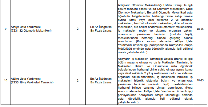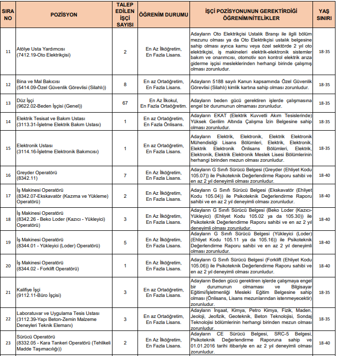 İlana göre öne çıkan kadrolar şunlar: