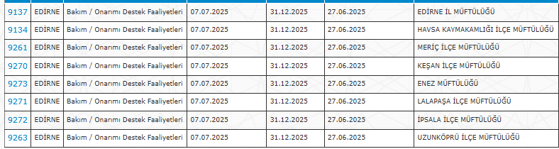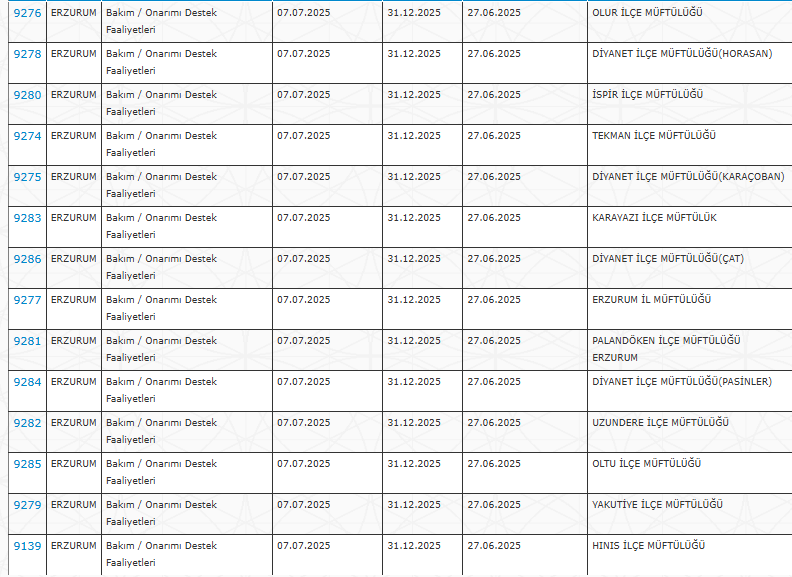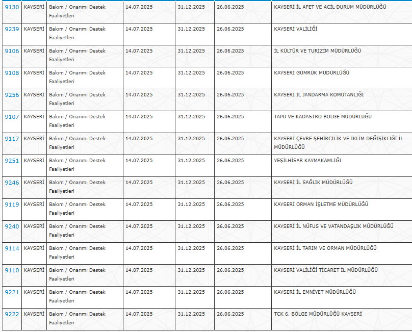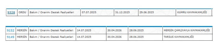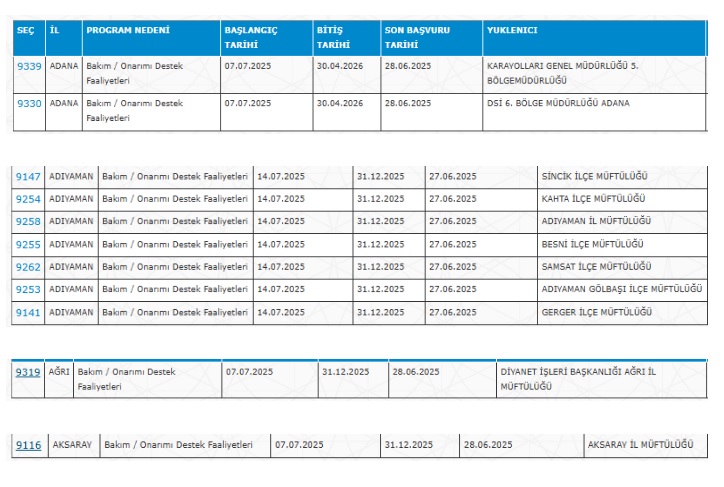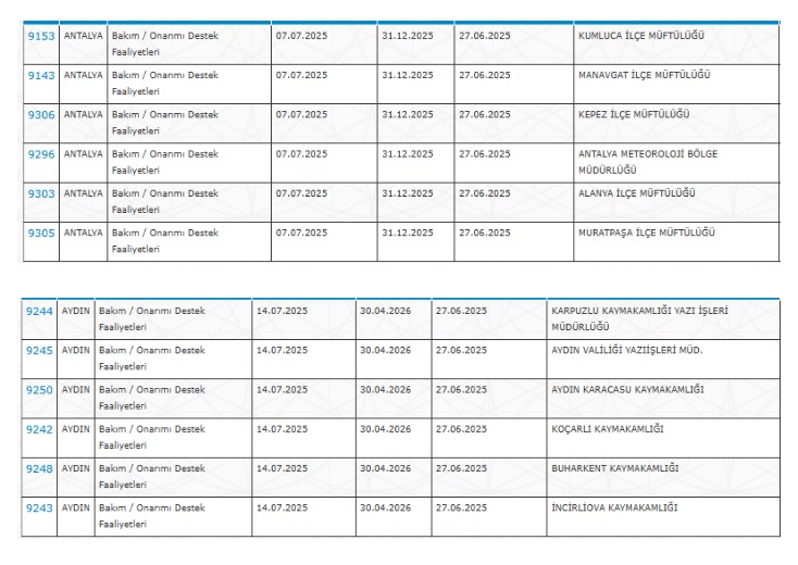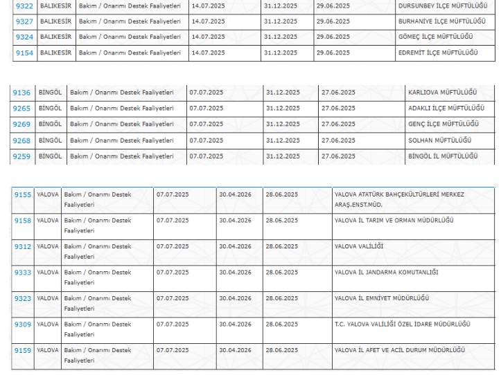 Kurumların detaylı ilan görüntüleri aşağıda verilmiştir (ekran görüntüleri üzerinden il-il kurumlar paylaşılmıştır).