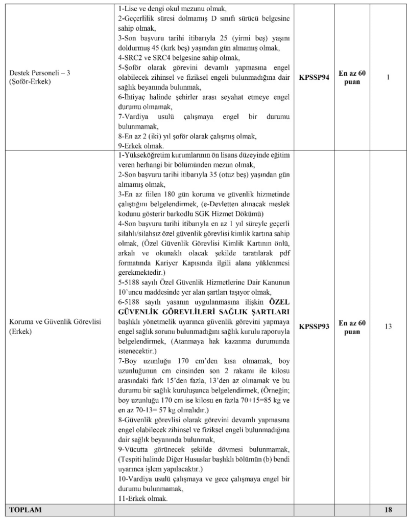 📌 Bu ilanda güvenlik ve şoför kadroları erkek adaylar için açılmıştır.