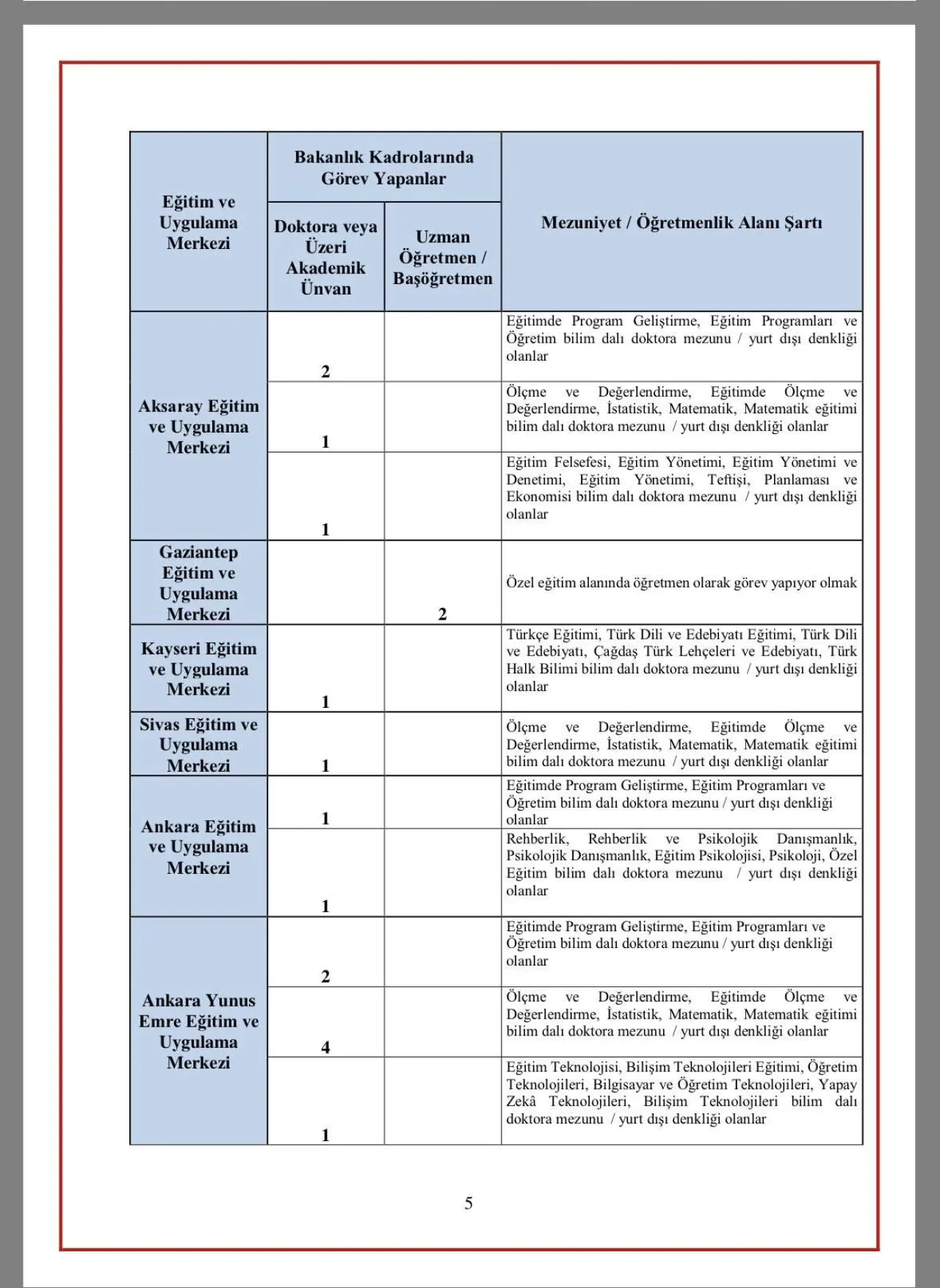 - Uzman Öğretmen veya Başöğretmen unvanına sahip adaylar
