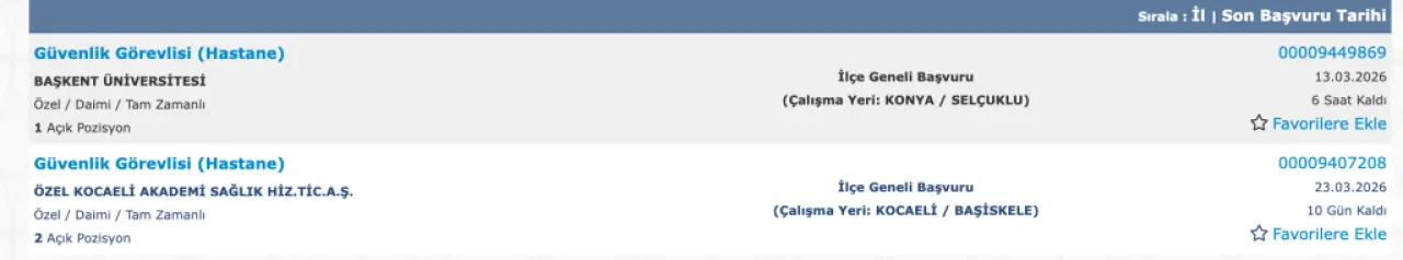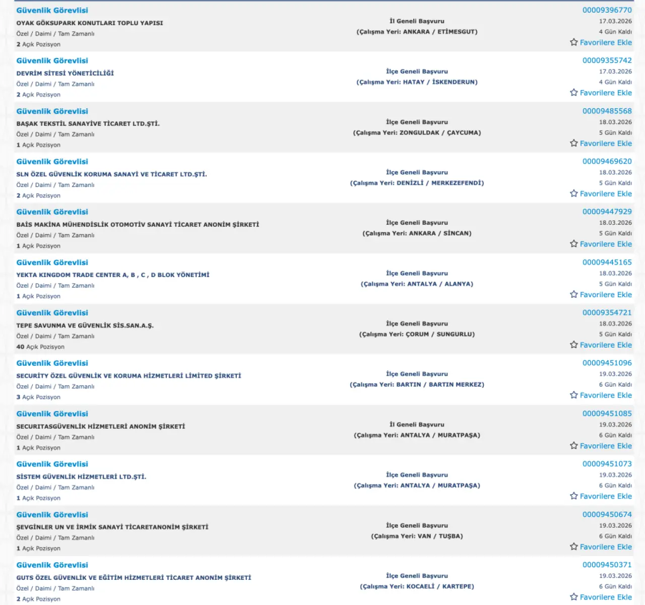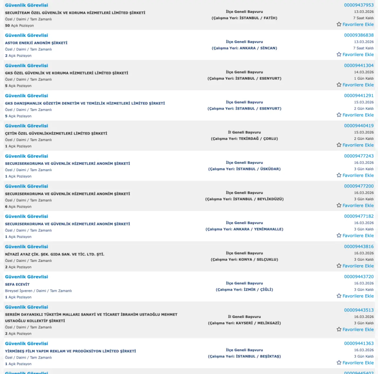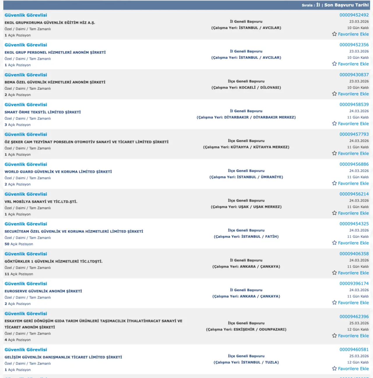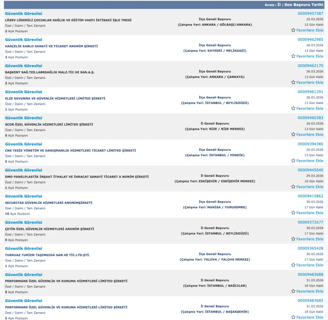 - “Açık İş İlanları” bölümünden güvenlik ilanlarını filtreleyerek