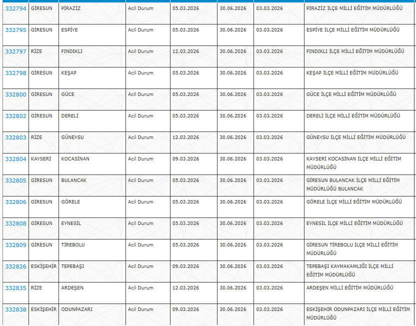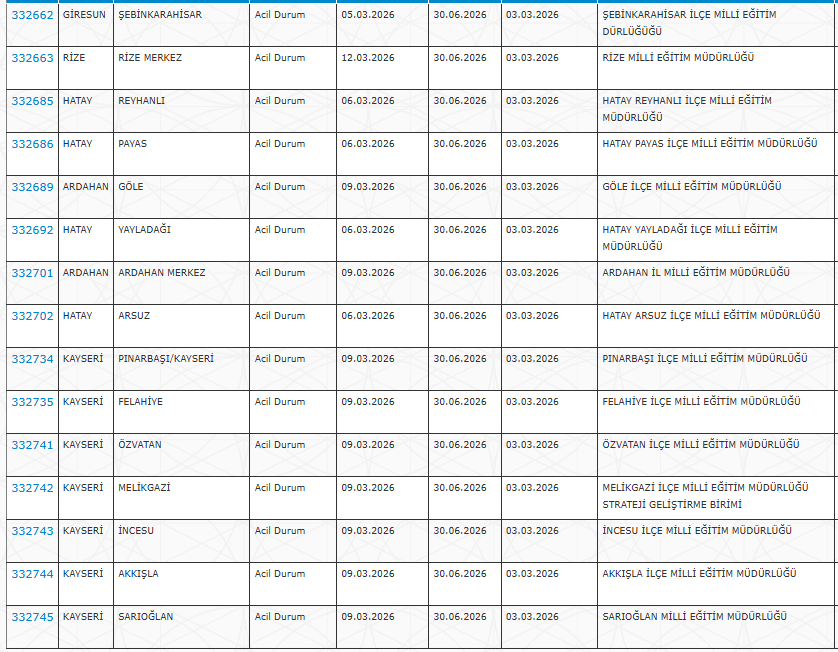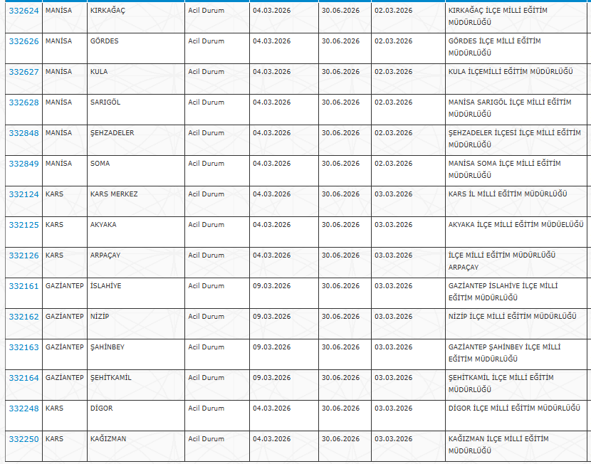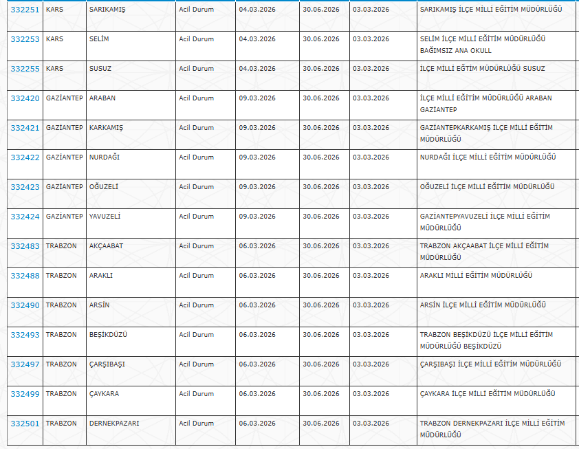 Alımlar özellikle ilçe ve köy okullarında temizlik ve güvenlik hizmetlerinde görevlendirilmek üzere gerçekleştirilecek.