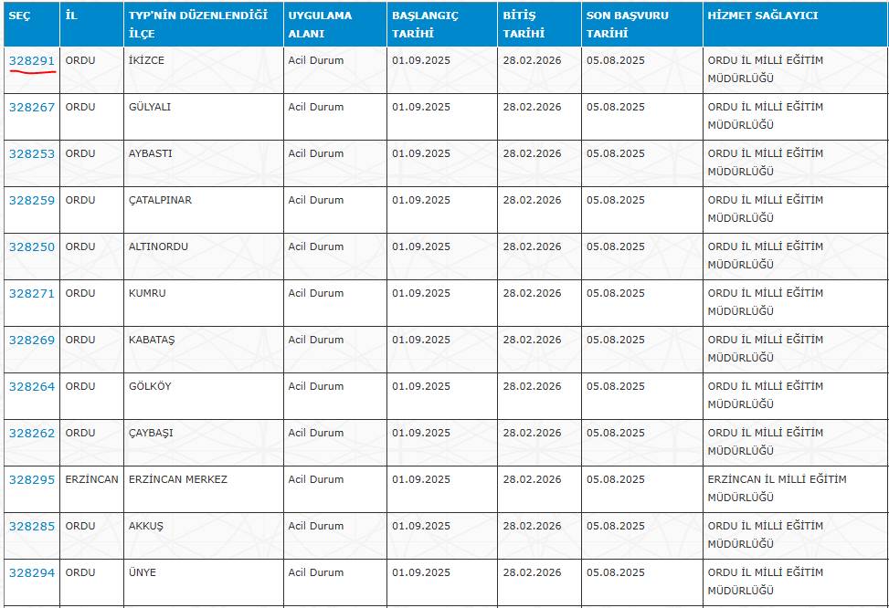 TYP numarası, başvuru ekranında ilanın detaylarına ulaşmak için tıklanan numaradır.