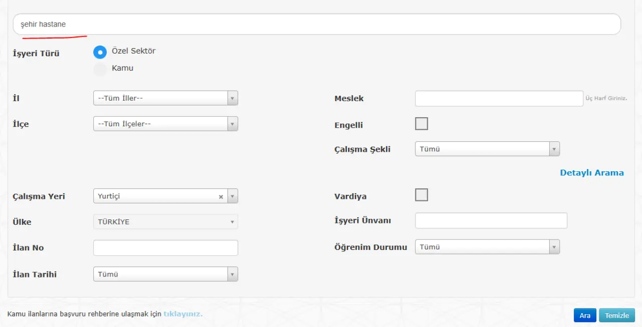 - Arama kısmına “şehir hastane” yazılarak ilanlar listelenir