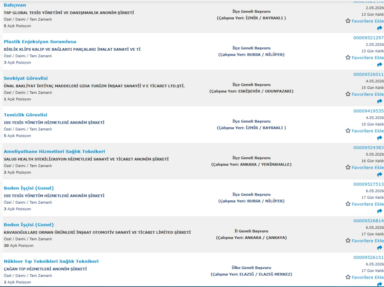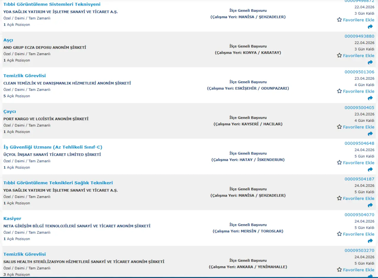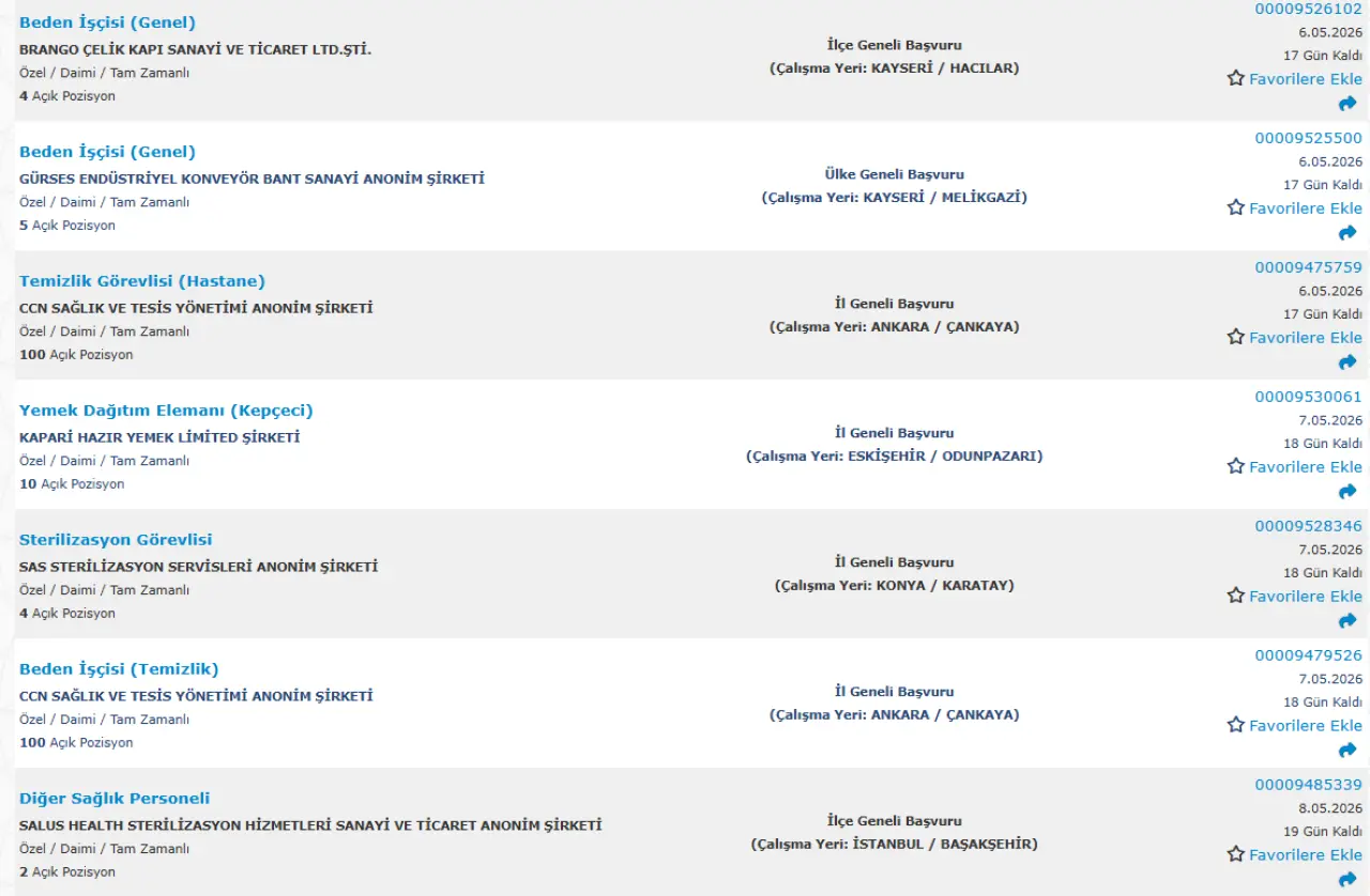 Bazı pozisyonlar için ek olarak deneyim veya mesleki belge talep edilebiliyor.