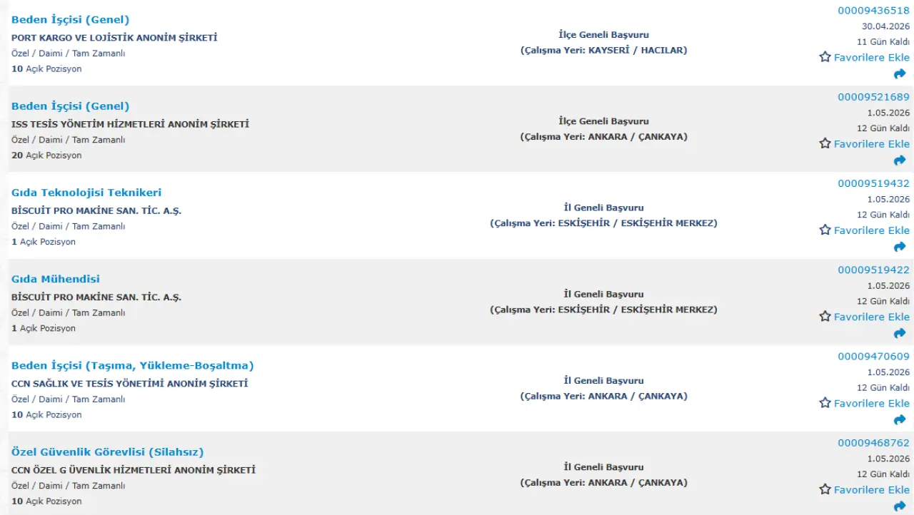 İŞKUR üzerinden yayımlanan ilanlara göre adaylardan genel olarak şu şartlar aranıyor: