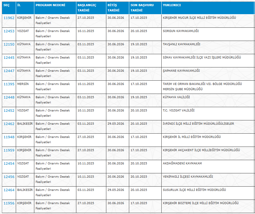 Bu koşulları sağlayan adaylar, program kapsamında belirtilen illerde başvurularını kolaylıkla yapabiliyor.