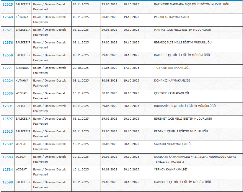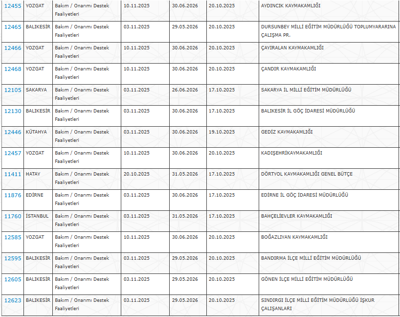 İllerin yanı sıra bu kurumlar bünyesinde farklı kadrolarda destek personeli, temizlik personeli, büro personeli ve yardımcı hizmetler alanlarında istihdam sağlanacak.